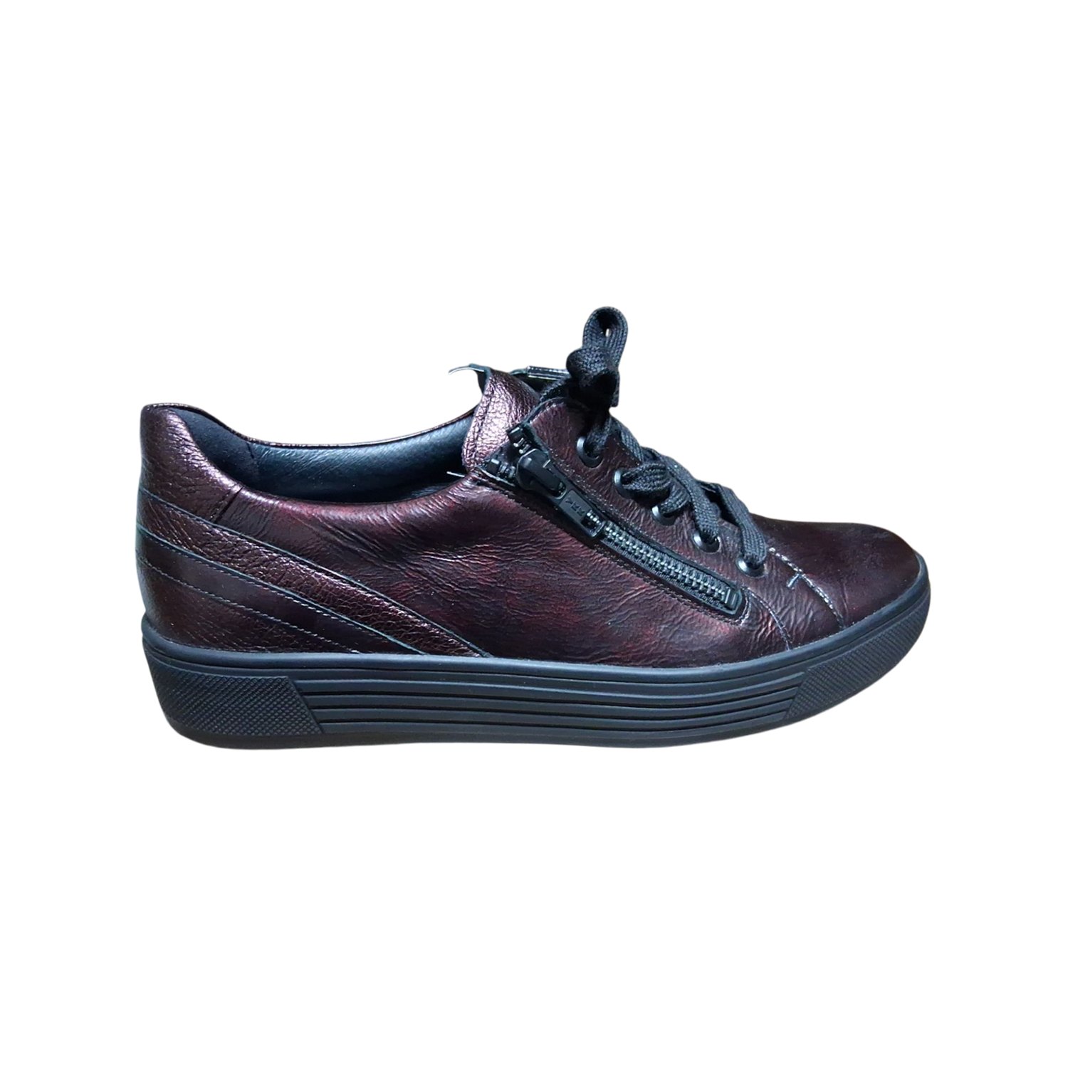 - Stylish plateau-sole design with a fashionable leather upper.
